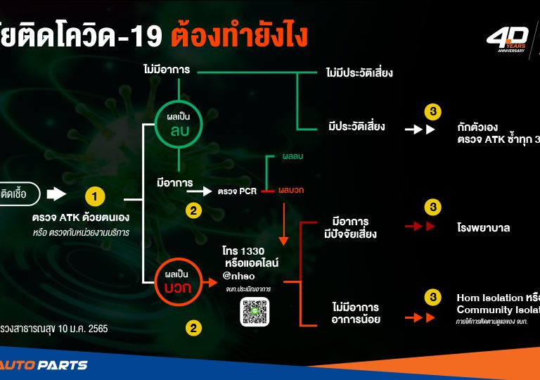 สถานการณ์แพร่ระบาดของโรคโควิด-19 ยังคงน่าเป็นห่วง วันนี้ บริษัท จี.พี.อะไหล่ จำกัด จึงขอนำเอา แนวปฏิบัติเมื่อสงสัยว่าตนเองอาจติดเชื้อโควิด-19 จากกระทรวงสาธารณสุขมาฝากกันครับ โดยเน้นการตรวจ ATK ด้วยตนเอง หรือกับหน่วยให้บริการเป็นอันดับแรก กรณีตรวจด้วยตนเอง หากผล ATK เป็น ‘บวก’ ให้ติดต่อ สปสช. โทร 1330 ได้ตลอด 24 ชม. หรือแอดไลน์ @nhso จะมีเจ้าหน้าที่คอยช่วยเหลือ ประเมินอาการให้ว่าอยู่ในระดับใด กรณีตรวจกับหน่วยให้บริการ เจ้าหน้าที่ที่หน่วยให้บริการจะเป็นผู้ประเมินอาการ สำหรับ ผู้ป่วยไม่มีอาการหรืออาการน้อย และไม่มีปัจจัยเสี่ยง เช่น โรคประจำตัว ผู้ป่วยสามารถเข้า Home Isolation หรือ Community Isolation ได้ โดยจะมีเจ้าหน้าที่คอยติดตามสอบถาม ดูแลอาการอย่างต่อเนื่อง พร้อมทั้งจัดส่งยาและสิ่งของจำเป็นให้จนกระทั่งหายดี ทั้งนี้ เพื่อลดความแออัดของโรงพยาบาล เนื่องจากโควิด-19 #สายพันธุ์โอมิครอน แพร่ระบาดง่าย แต่อาการไม่รุนแรง แต่ถ้าในระหว่างช่วง Home Isolation หรือ Community Isolation แล้วผู้ป่วยมีอาการแย่ลง เจ้าหน้าที่ก็จะประสานส่งตัวผู้ป่วยเข้ารักษาในโรงพยาบาล เป็นกรณีต่อมา สำหรับผู้ป่