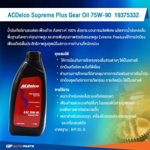 ACDelco Supreme Plus Gear Oil 75W-90 19375332 is a fully synthetic automotive gear and differential oil.